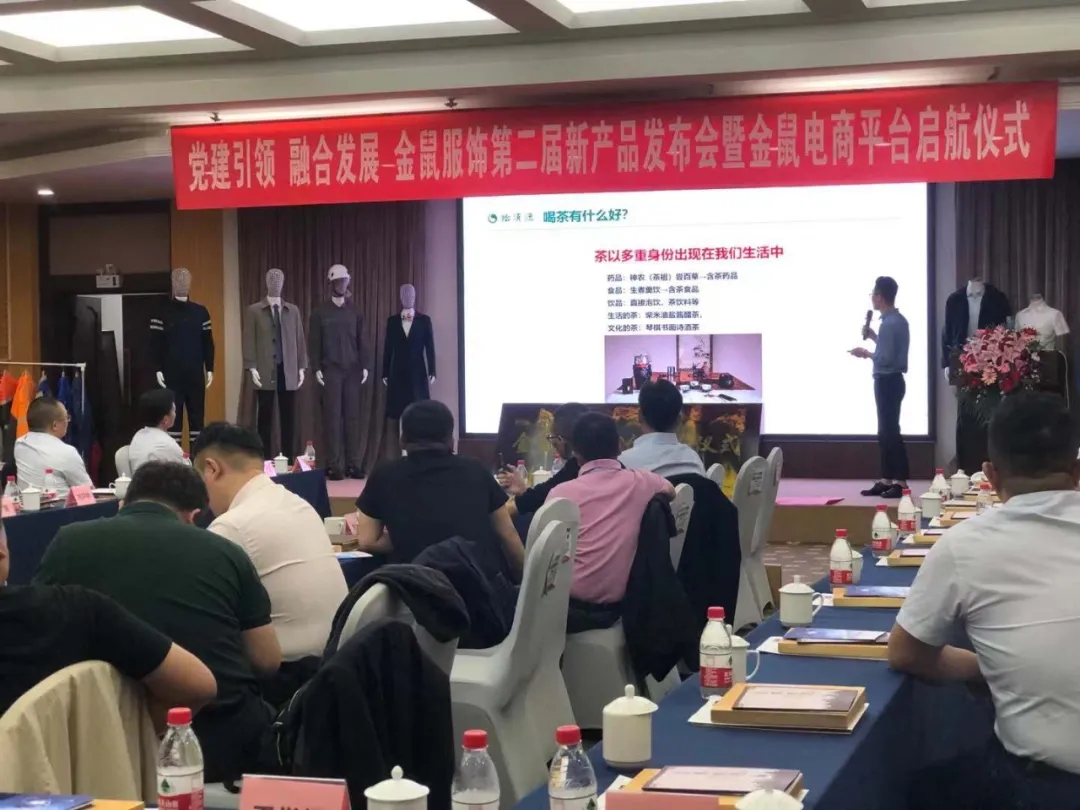 科技创新,引领未来,为进一步促进PPE领域产供销研用沟通交流,以及各大企业联合合作。由隆平高科技园非公党务者工作联席会主办,北京金鼠科技有限公司承办,中国煤炭生产力促进中心、怡清源茶业、明园蜂业等协办的第二届金鼠服饰新品发布会暨金鼠电商起航仪式在北京举办,各企业负责人及领导约60余人参与了会议。会议现场,怡清源茶业副总经理、安化怡清源总经理周静先生“做一杯有温度的茶”主题演讲,给在场的各企业负责人以及参会领导上了一场生动的茶叶养生课。