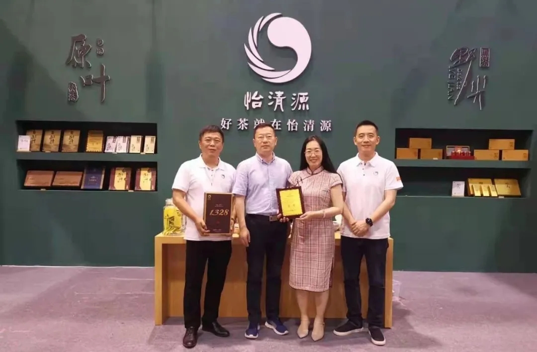2021第15届中国(青岛)国际茶文化博览会暨紫砂艺术展 在青岛国际会展中心开展,本届展会展出面积达30000㎡,参展茶企400余家,分为六大展区。展会将持续到6月14日端午节当天。 开幕式优质茶产品评选环节中, 怡清源茶业送选茶样 1328手筑茯茶 荣获金奖。▲ 怡清源茶业总经理丁晓栋先生(左二)与奖牌合影留念怡清源茶业展位位于青岛国际会展中心1/5号馆T22-1号。本次展会是“ 怡清源25周年,历久弥新 ”主题形象首次亮相, 1328手筑茯茶 、 怡清源草本系列 (葛根香橼茶、黄精荷香茶、藿香姜茯茶、黑玫瑰茶、姜茯茶)、 原叶系列 (福缘原叶、1223原叶、大师原叶)、 野尖系列 (金币、金豆、金砖、金芽)等多款怡清源代表产品在现场展出,吸引众多青岛市民参观品鉴。