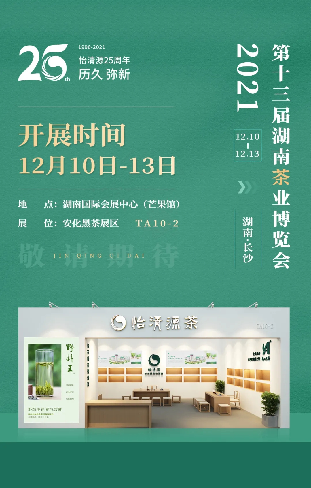 第十三届湖南茶业博览会12月10日在长举行,怡清源盛装出席,敬请期待!