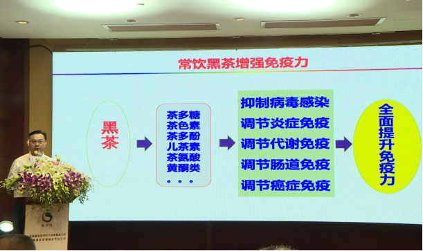 ▲刘院士讲解”常饮黑茶增强免疫力“