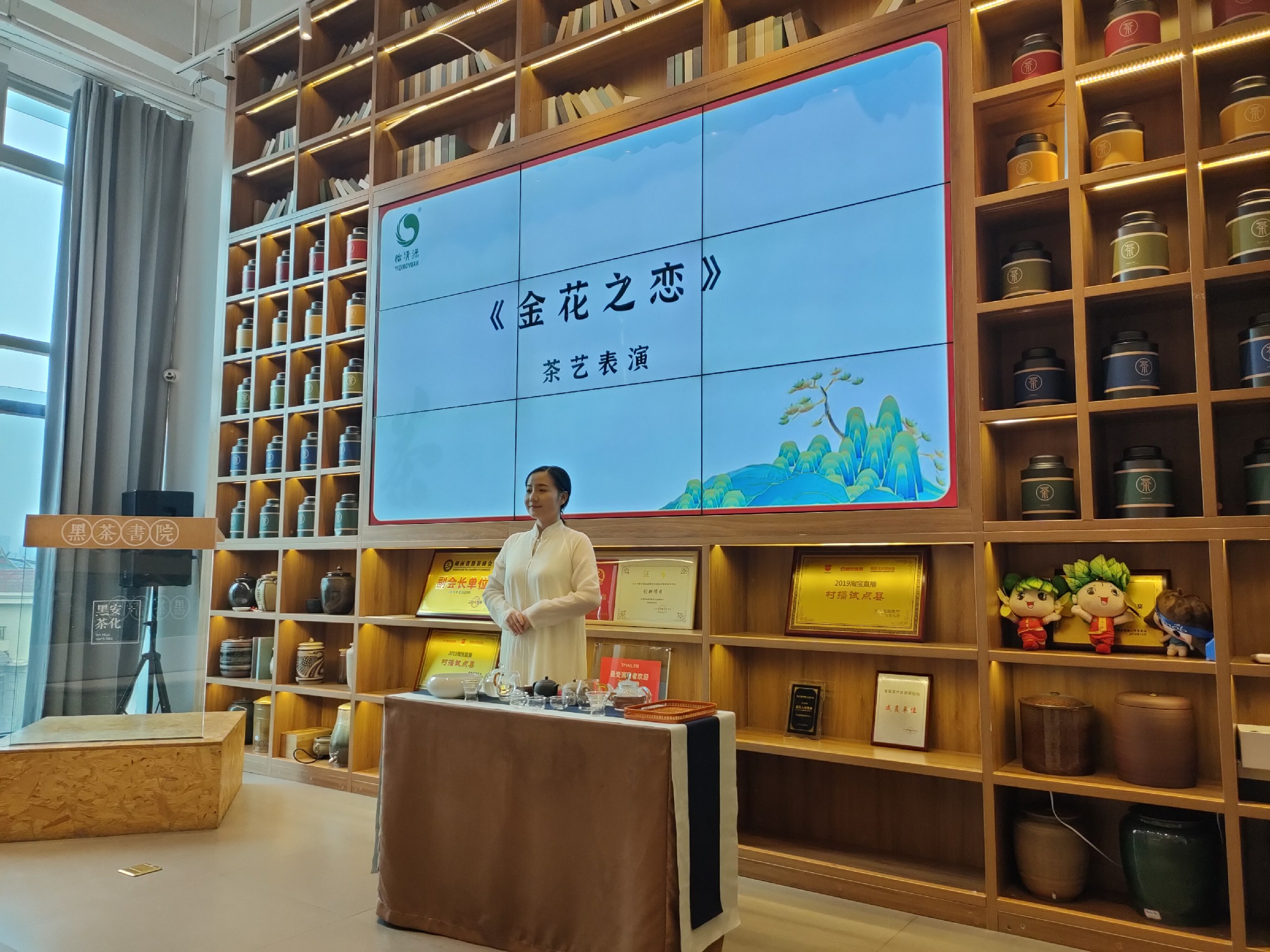 仪式伊始,怡清源文化艺术团高级茶艺师为在场嘉宾带来了精彩的茶艺表演--《金花之恋》。