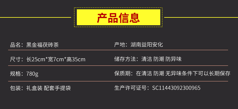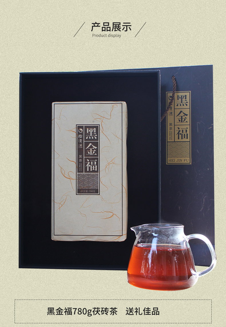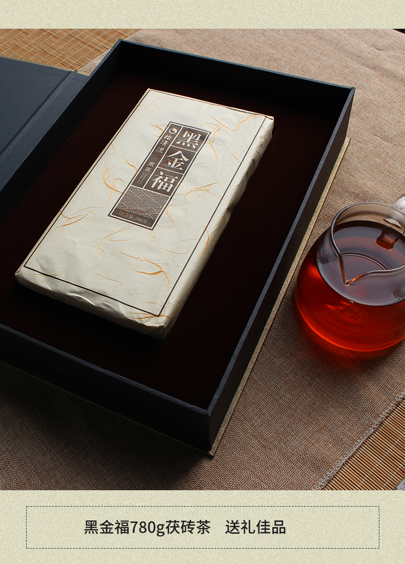 【简 介】黑金福780g茯砖茶,创新黑茶关键技术,纯手工制作,