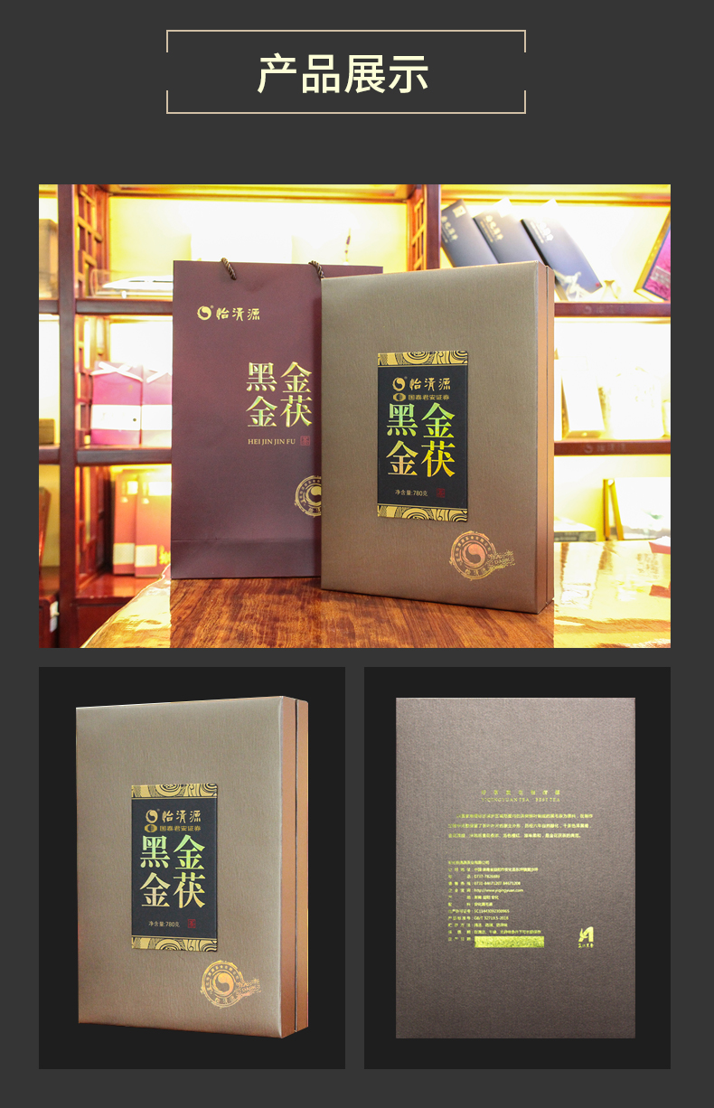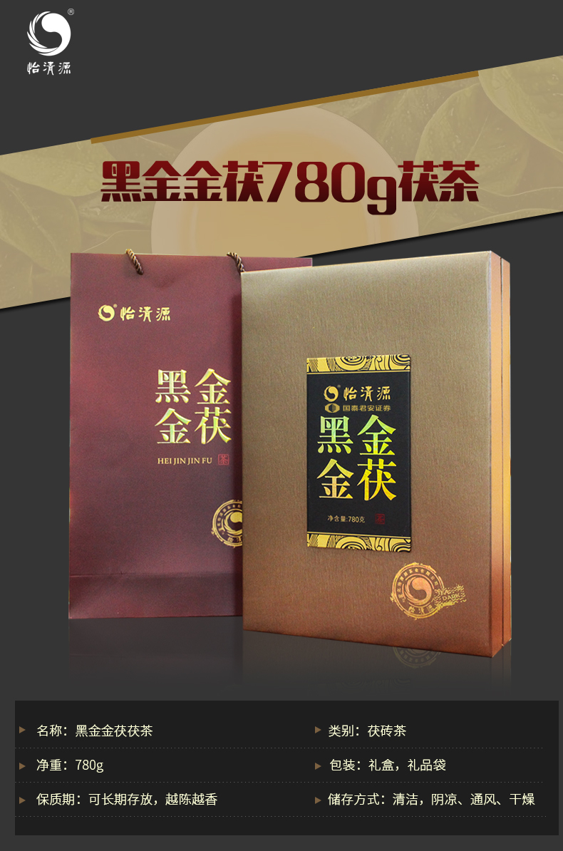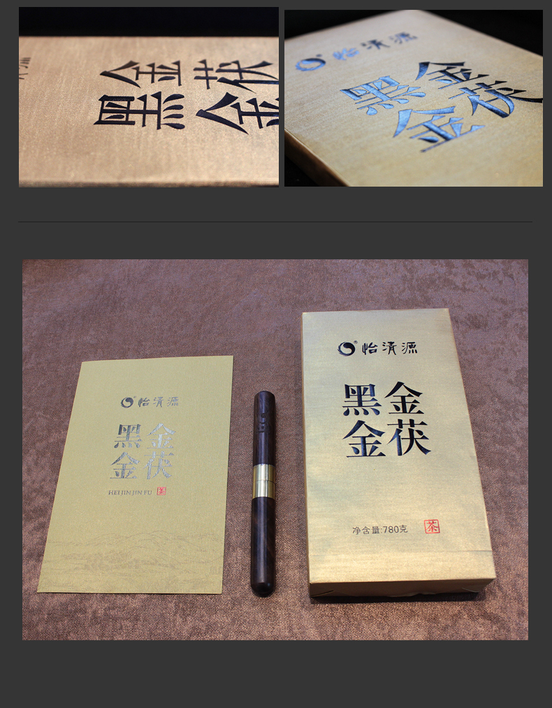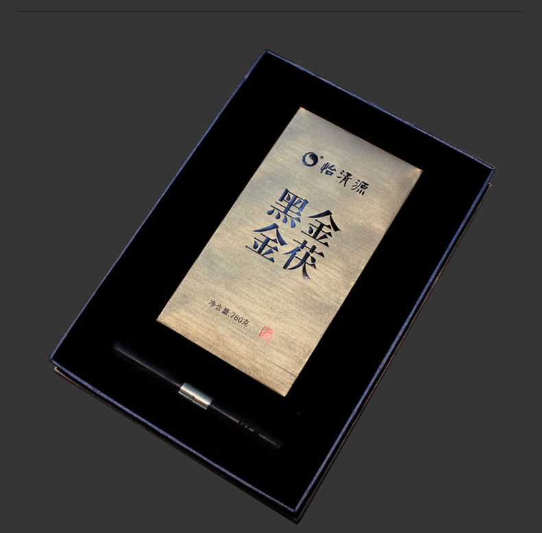 【简 介】黑金金茯为客户定制茯砖茶,可长期存放,越陈越香。