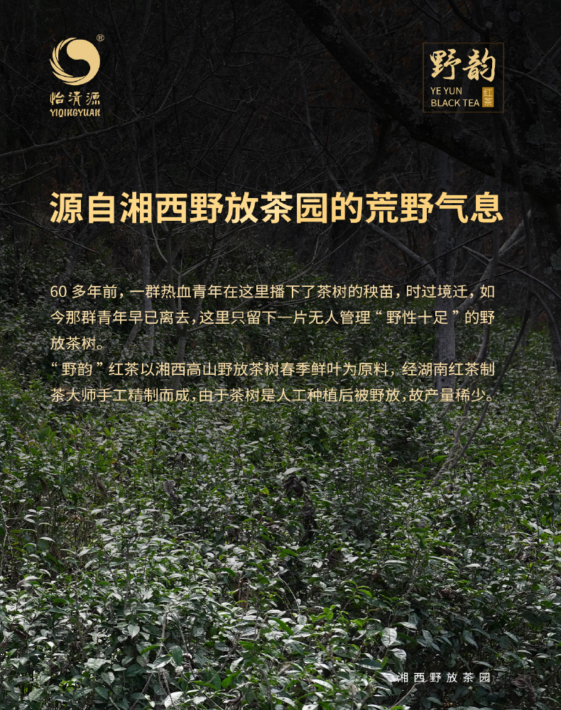 野韵”红茶以湘西高山野放茶树春季鲜叶为原料,经湖南红茶制茶大师手工精制而成,由于茶树是人工种植后被野放,故产量稀少。醇厚饱满 野性十足。